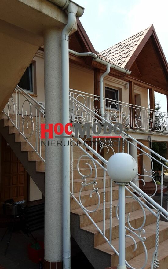 Drugi dom zbudowany w 2008r o powierzchni ok. 560m2, składa się z czterech niezależnych pokoi z łazienkami oraz jednego pokoju z aneksem kuchennym i łazienką. W budynku tym znajduje się również duża wyposażona kuchnia, wspólna dla wszystkich gości oraz salon z kominkiem. W bryle budynku znajduje się również garaż i zaplecze techniczne- kotłownia, pralnia schowek na meble i sprzęt ogrodowy. .Stan techniczny obu budynków jest bardzo dobry dzięki prowadzonym systematycznie pracom konserwatorskim. Budynek pensjonatowy jest corocznie doinwestowywany. Wynajem pokoi w sezonie wakacyjnym jak również w sezonie zimowym, dzięki wyposażeniu w instalację CO daje stały przychód właścicielom. (Szczegóły dla konkretnie zainteresowanych). Nieruchomość sprzedawana jest wyłącznie w całości wraz z kompletnym wyposażeniem.