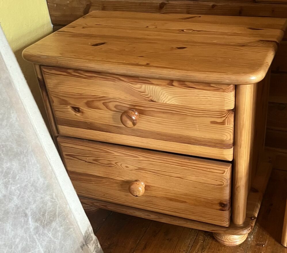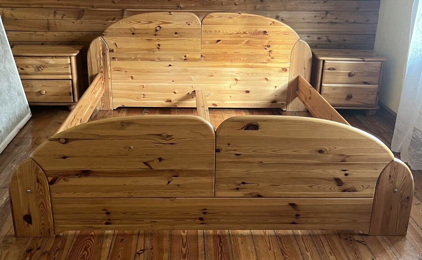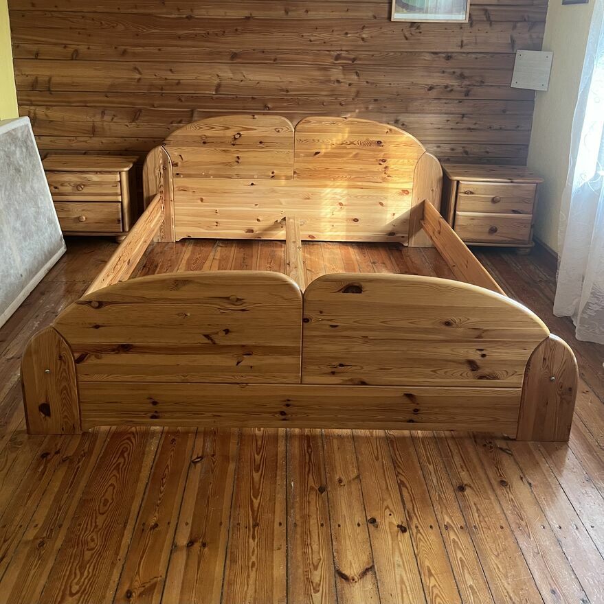 Sprzedam solidne drewniane łóżko z materacem i 2 szafki nocne. Stelaż nie jest potrzebny.Wymiary łóżka: